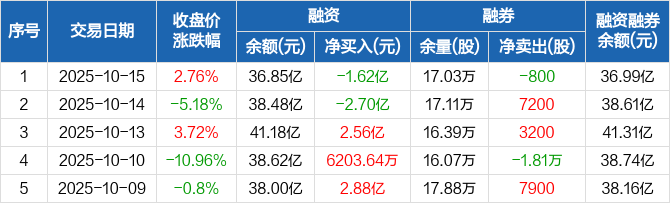 亿纬锂能:融资净偿还1.62亿元,两市排名第12(10-15)