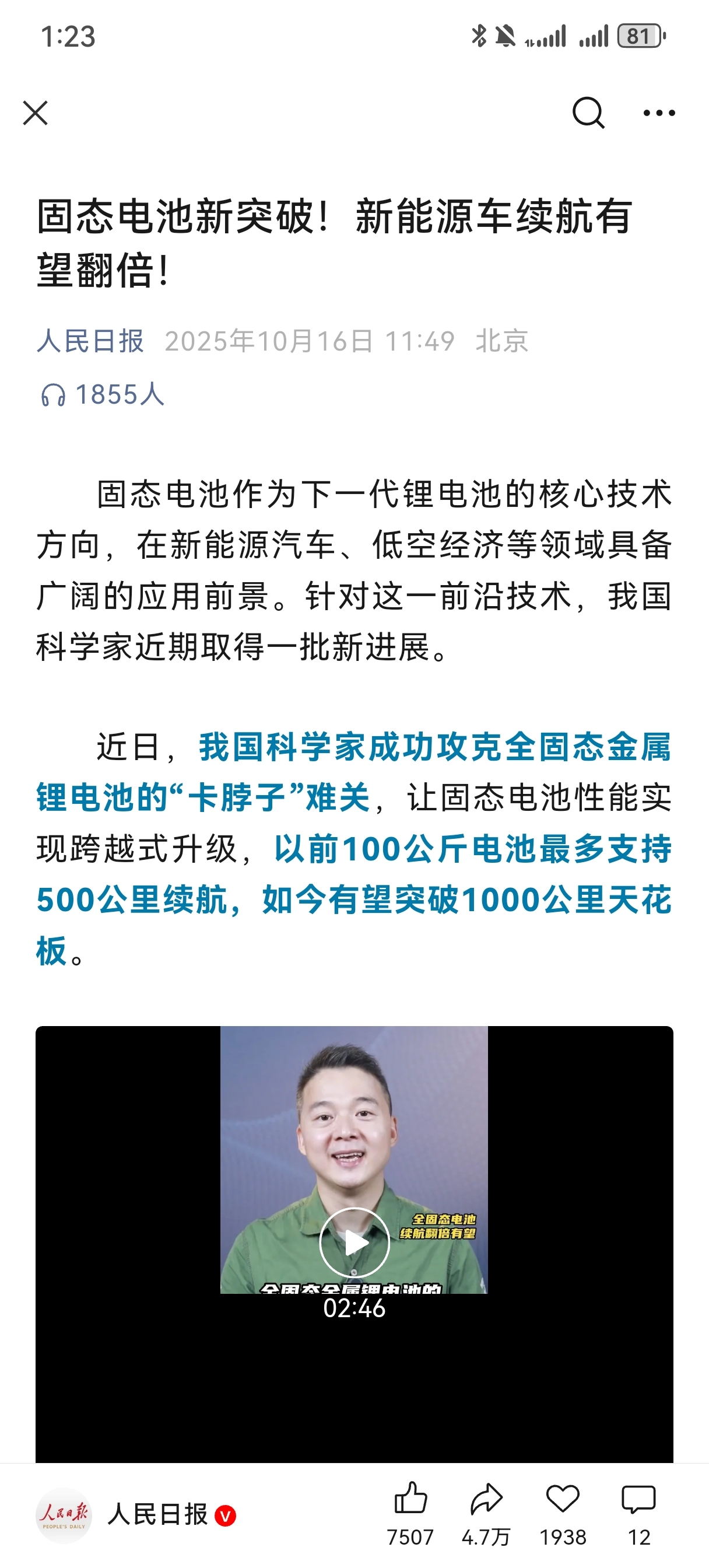 委托标的:人民日报,央视新闻,新华社都发文固态电池有突破了买卖方向:笔记: