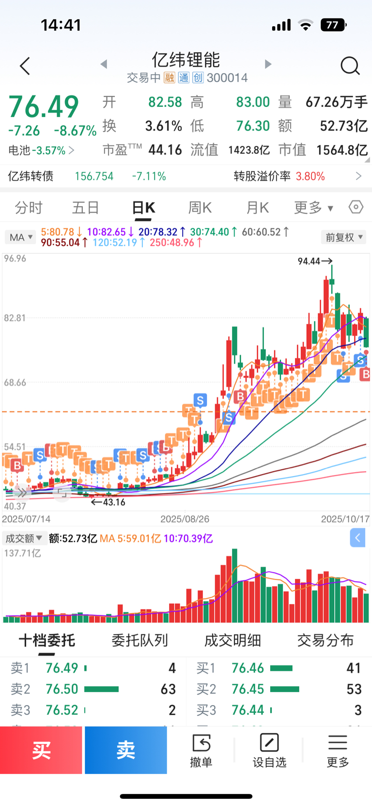 $亿纬锂能(SZ300014)$ 又是赚股不挣钱的一天
