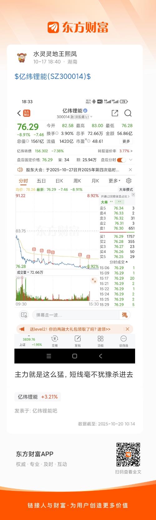 温馨提示: 1.根据《证券法》规定,禁止编造、传播虚假信息或者误导性信息,扰乱证券市场;2.用户在本社区发表的所有资料、言论等仅代表个人观点,与本网站立场无关,不对您构成任何投资建议。用户应基于自己的独立判断,自行决定证券投资并承担相应风险。《东方财富社区管理规定》