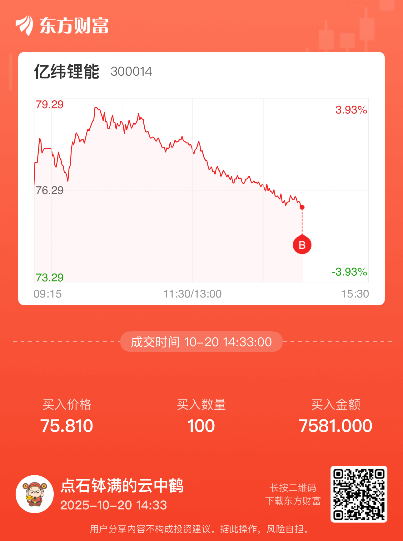 $亿纬锂能(SZ300014)$ 建个底舱,明天不是涨就是跌,明年150。