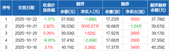 亿纬锂能:融资净偿还1.88亿元,两市排名第七(10-22)