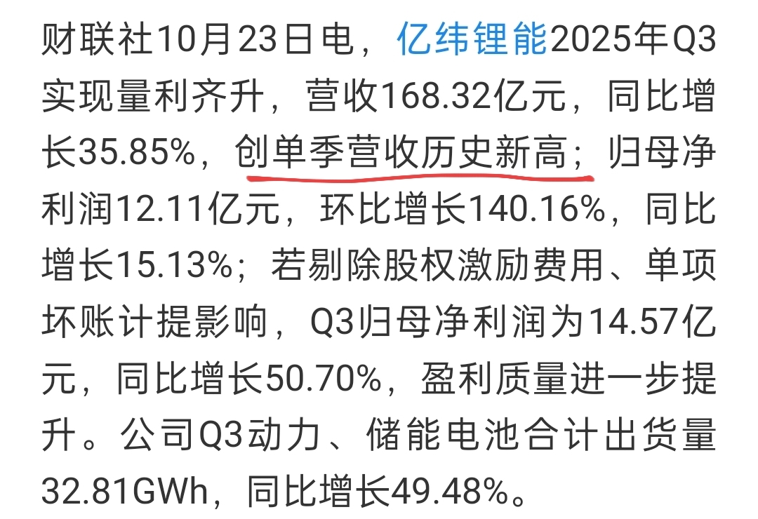 $亿纬锂能(SZ300014)$ 第三季度创历史新高,明天可以涨停了吧!