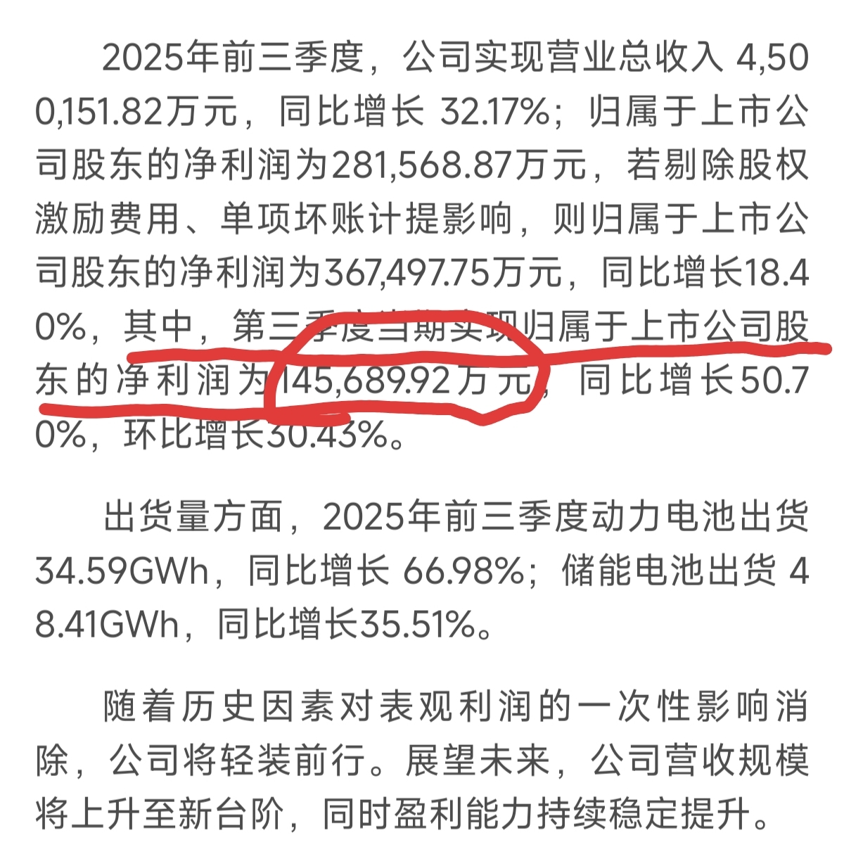 $亿纬锂能(SZ300014)$ 单季度14.5亿,应该小超预期。