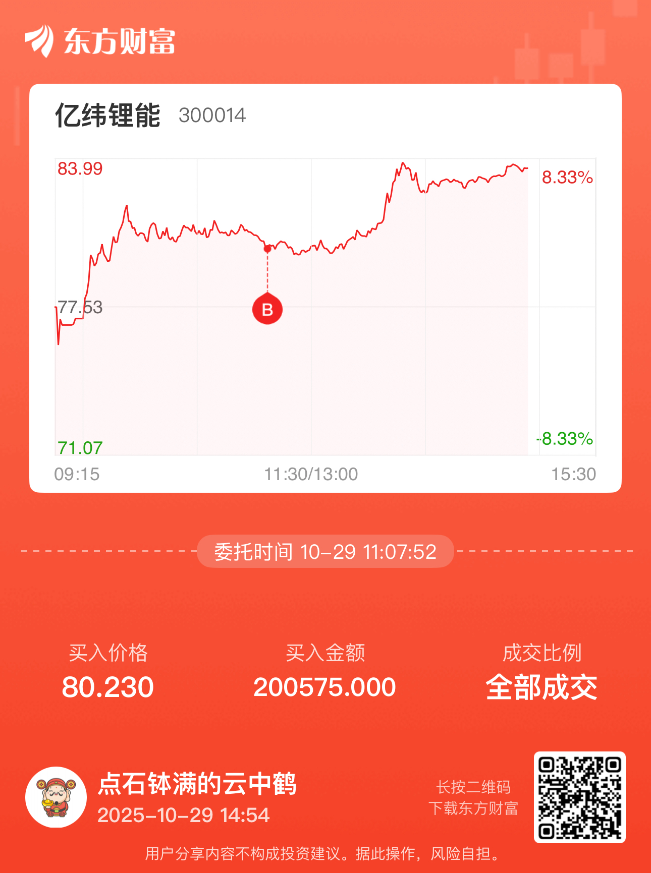 温馨提示: 1.根据《证券法》规定,禁止编造、传播虚假信息或者误导性信息,扰乱证券市场;2.用户在本社区发表的所有资料、言论等仅代表个人观点,与本网站立场无关,不对您构成任何投资建议。用户应基于自己的独立判断,自行决定证券投资并承担相应风险。《东方财富社区管理规定》