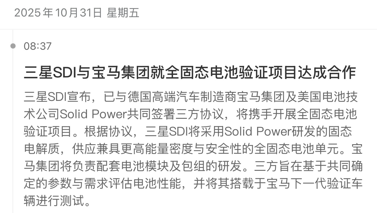 $亿纬锂能(SZ300014)$ 完了吧,你们最大的客户宝马要改用三星的固态电池了!梦破灭了吧?