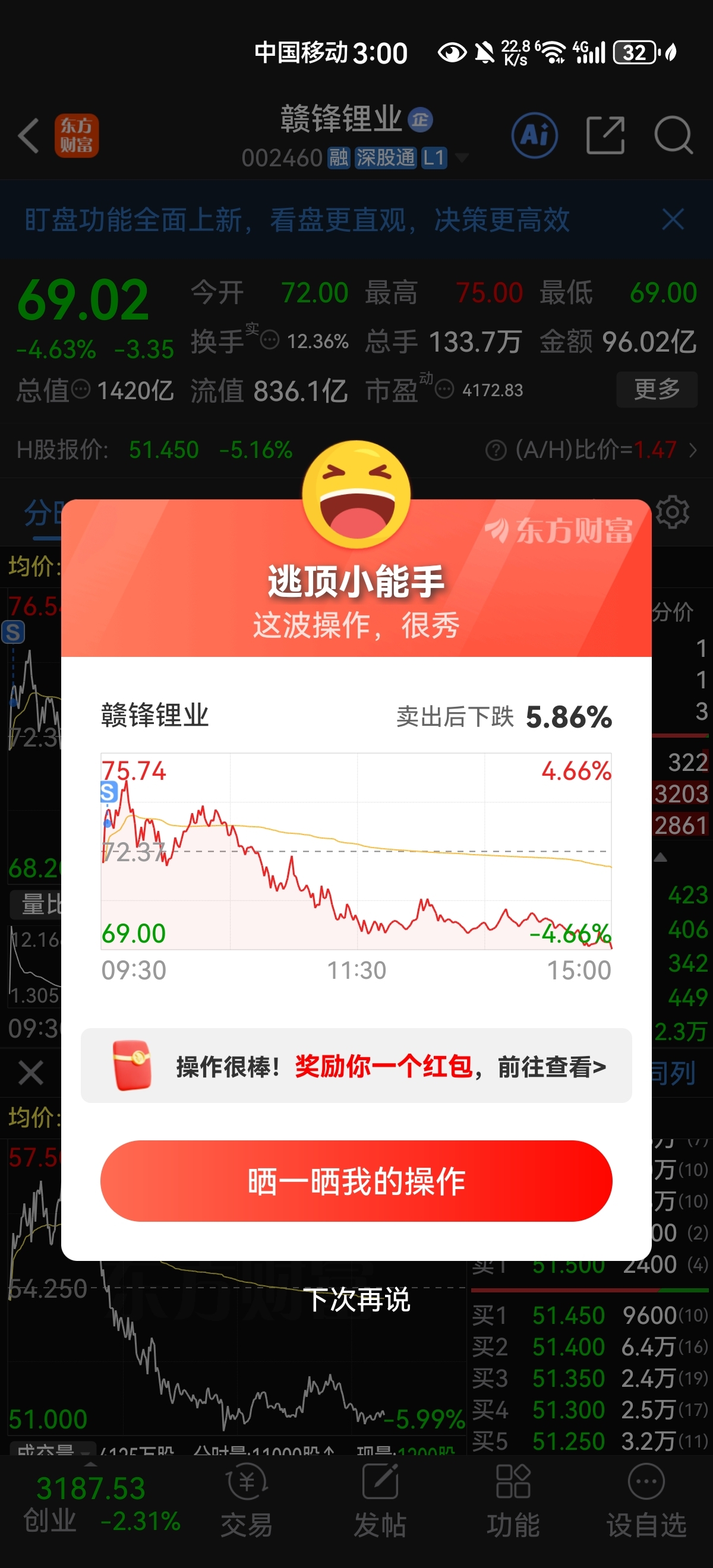73卖赣锋锂业,87买亿纬锂能。买崩了!亏死我了