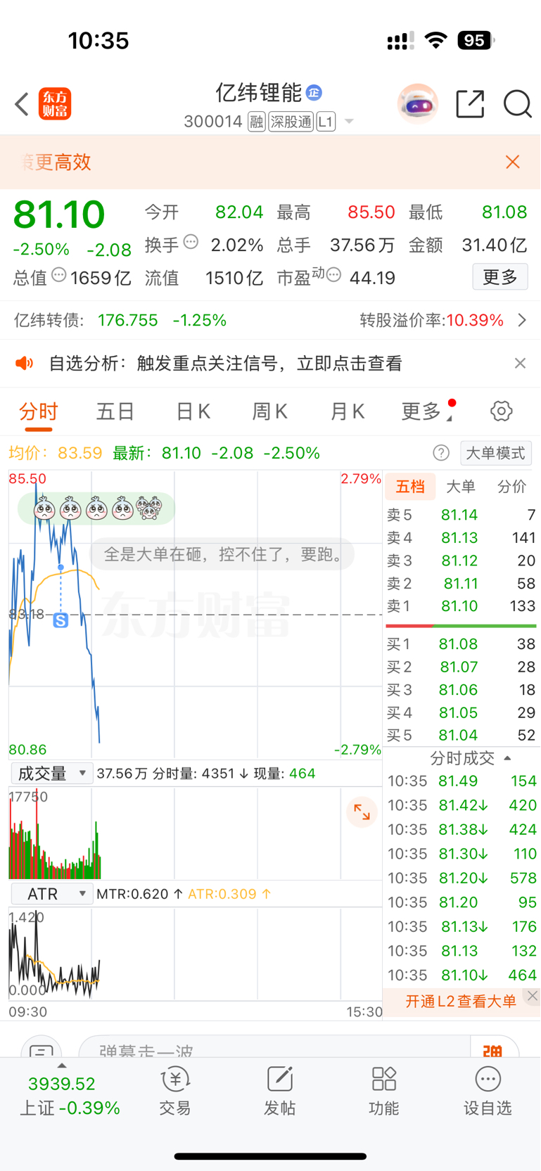 $亿纬锂能(SZ300014)$ 被量化玩坏了