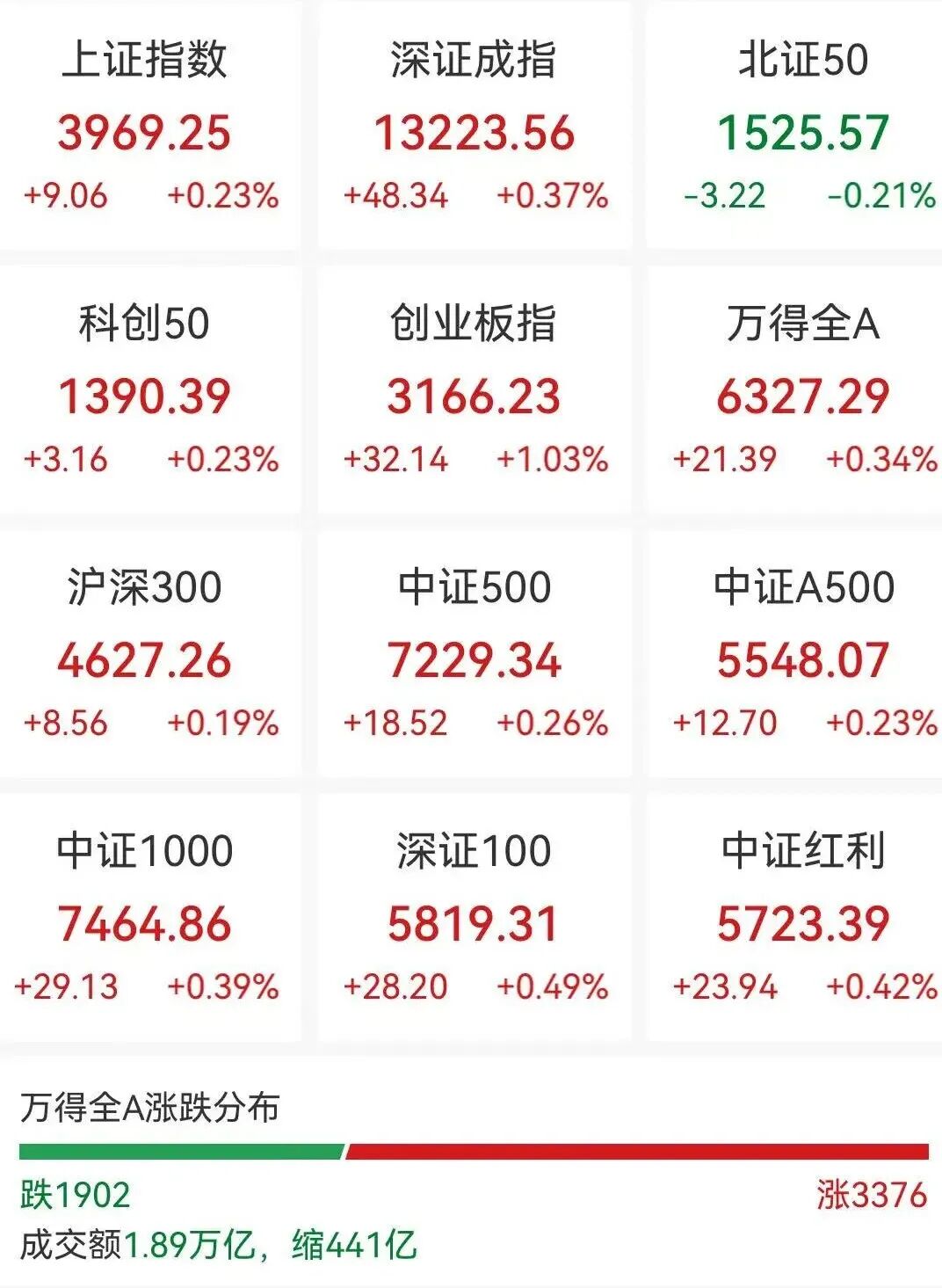 11月5日,A股三大指数低开高走,全线收红。截至收盘,沪指涨0.23%,深成指涨0.37%,创业板指涨1.03%。市场成交额1.89万亿,全市场超3300股上涨。