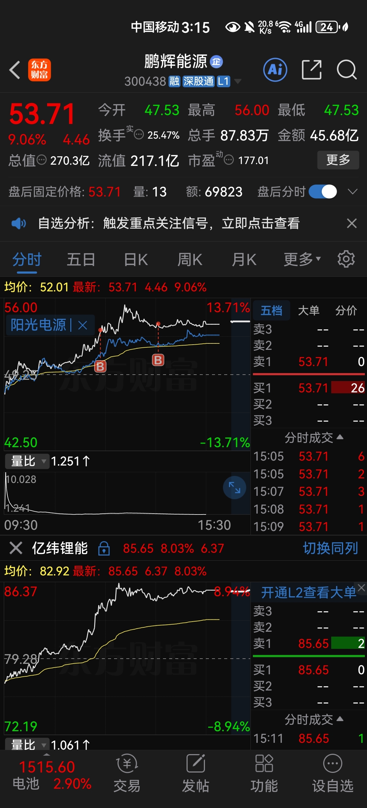 昨天割了亿纬锂能今天大涨,,科大国创止盈。再看你已经飞了,追涨鹏辉能源,希望明天