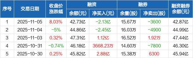 亿纬锂能:融资净偿还2.13亿元,两市排名第七(11-05)
