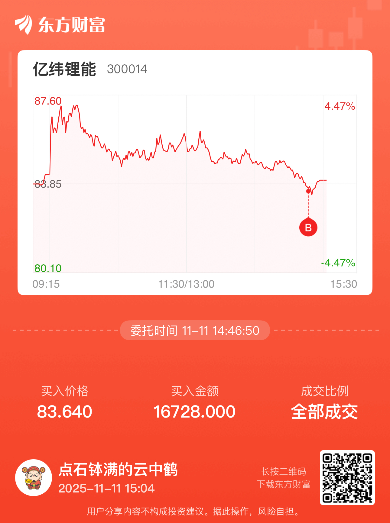 $亿纬锂能(SZ300014)$ 财不入急门,跌了就每天买点就行。