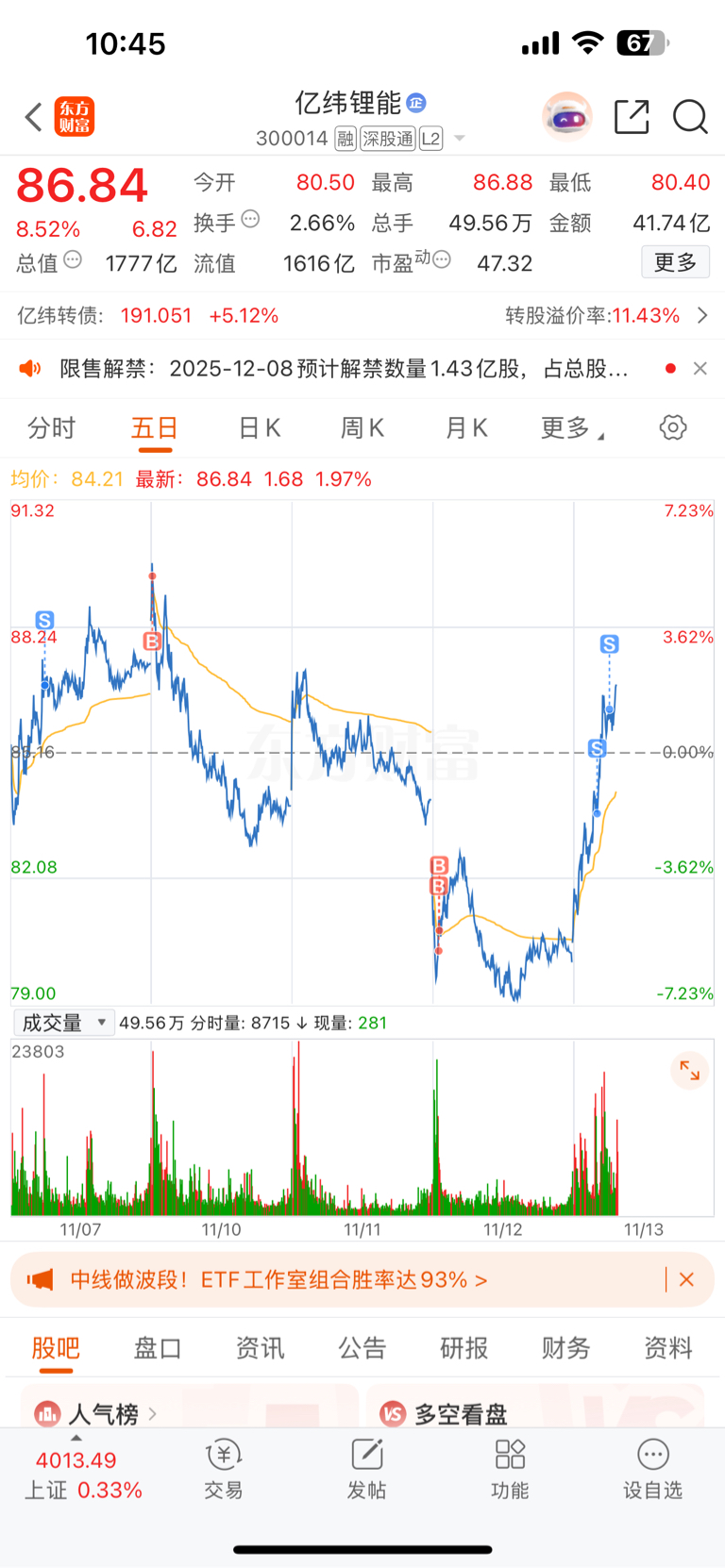 $亿纬锂能(SZ300014)$ 之前追高的一笔今天有机会让我T出去吗