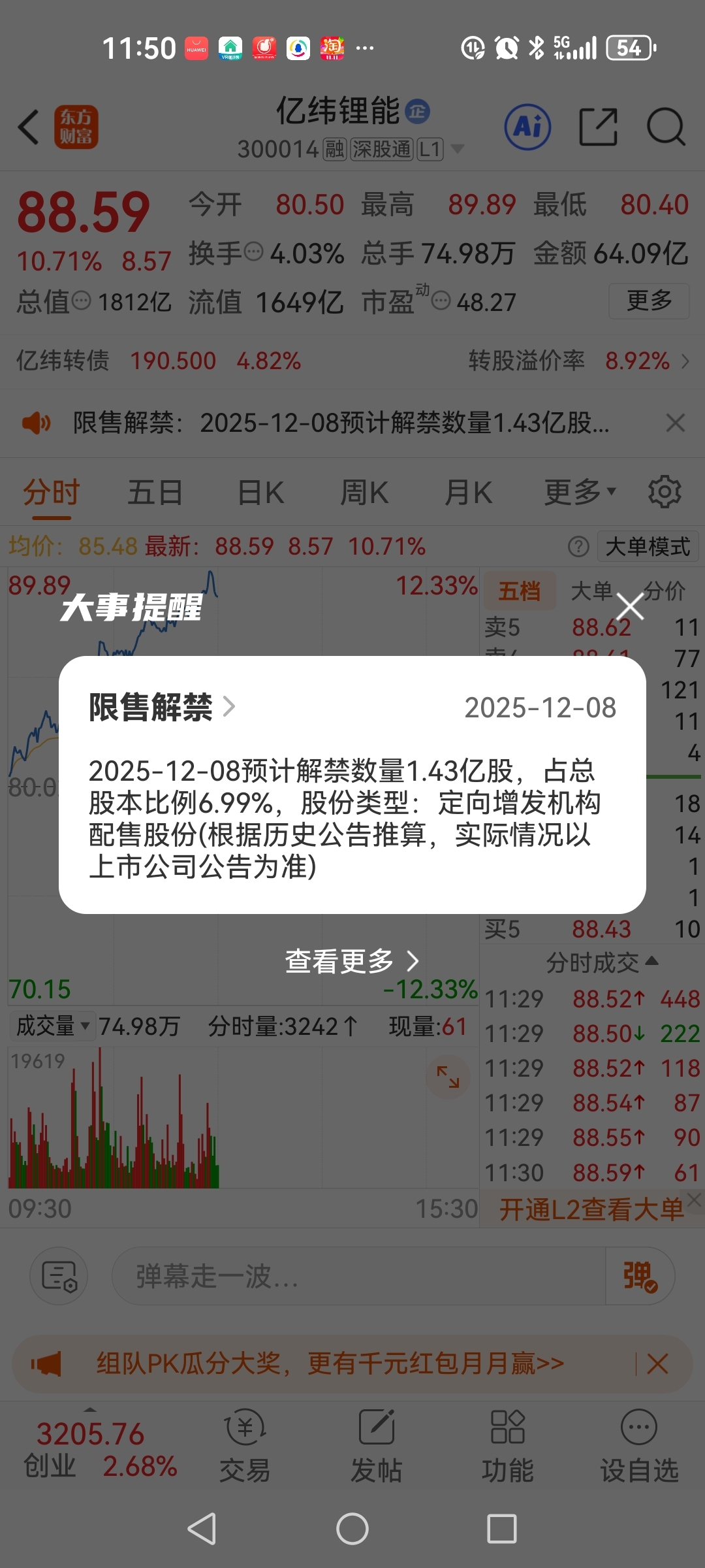 $亿纬锂能(SZ300014)$ 解禁上亿股