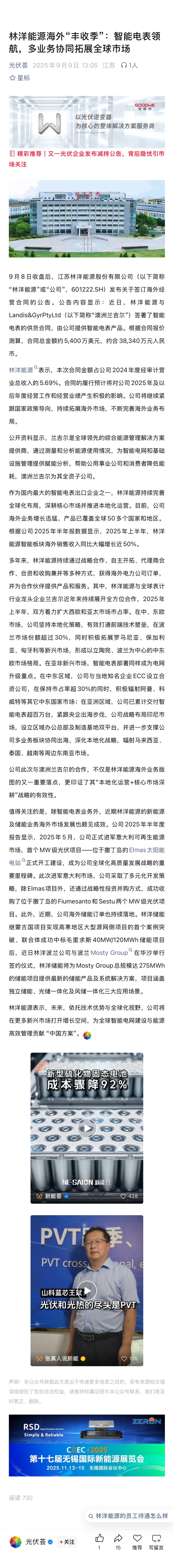 林洋能源 :电芯 -磷酸铁锂 -储能产业链一体化;进军TOPCon打造“N型专业一体化”。 这波锂电涨价皆因储能需求爆发,关注林洋能源海外业务爆发增长+海外基地扩张以及电表涨价。$亿纬锂能(SZ300014)$ $上能电气(SZ300827)$
