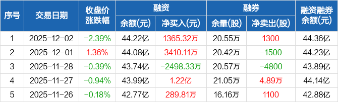 亿纬锂能:融资净买入1365.32万元,融资余额44.22亿元(12-02)