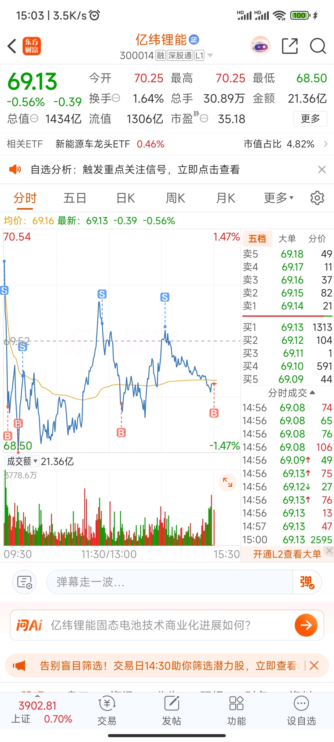 $亿纬锂能(SZ300014)$ 没办法只能做T了