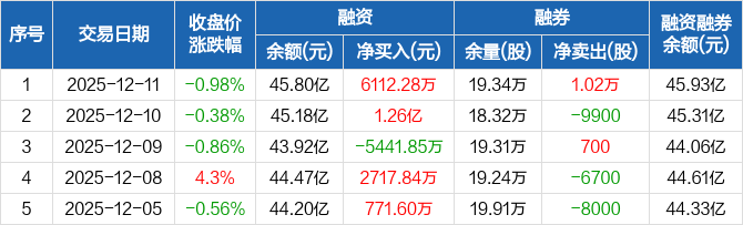 亿纬锂能:融资净买入6112.28万元,融资余额45.8亿元(12-11)