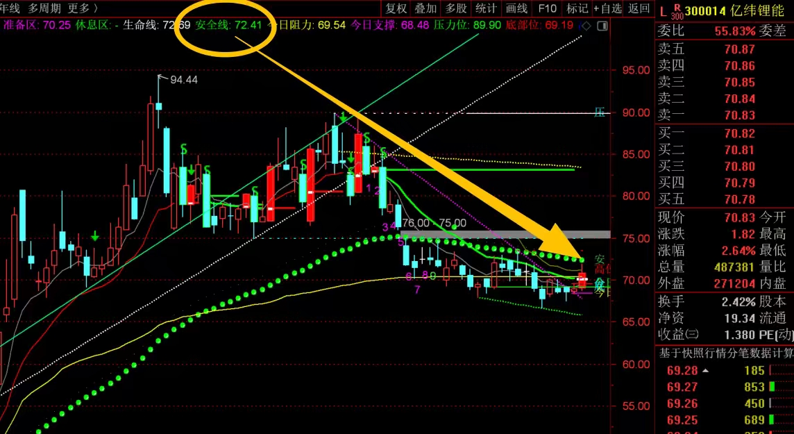 $亿纬锂能(SZ300014)$ 近期趋势走得偏弱,主要是前期高位回落下来,跌破了安全线后没有能马上拉起来站稳,而是沿着安全线震荡调整为主,没有远。接下来我们就重点盯着安全线72.41位置的得失,能稳住就没啥问题,但如果继续回落的话,就要注意再次破位连续下杀的风险了,注意控制仓位应对,不要激进。#复盘记录# #炒股日记#