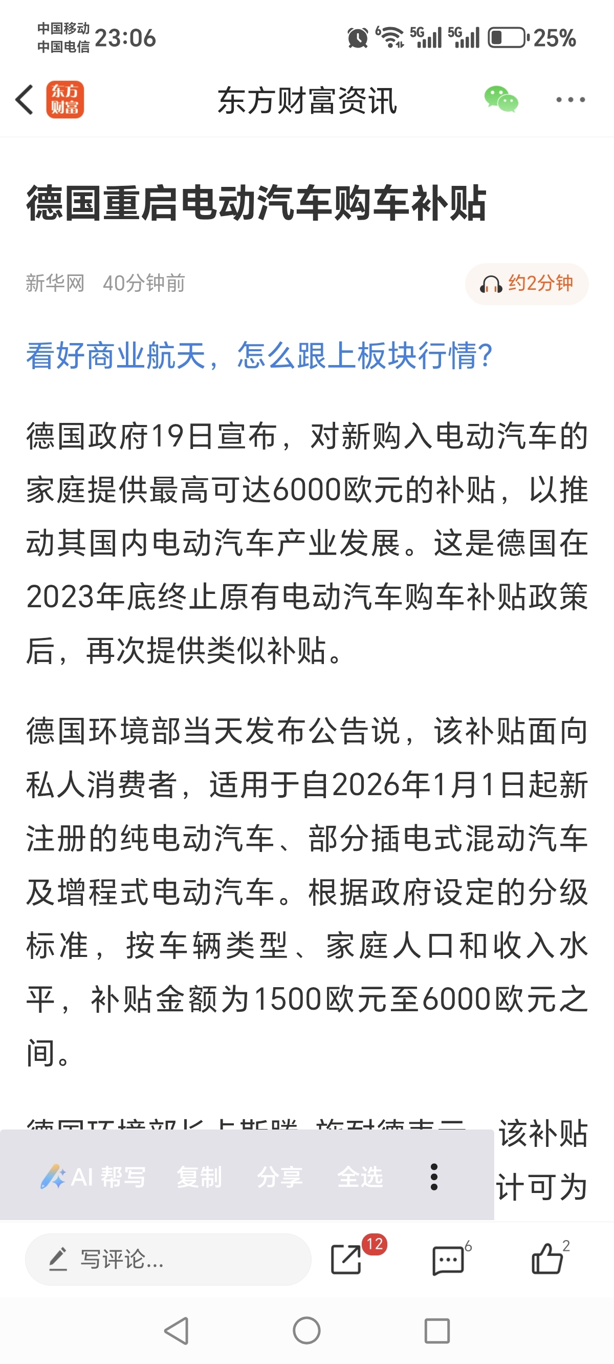 $亿纬锂能(SZ300014)$ 亿纬锂能,大利好回来了,欧洲开始补贴电动车,亿纬锂能的大圆柱电池要发飙了