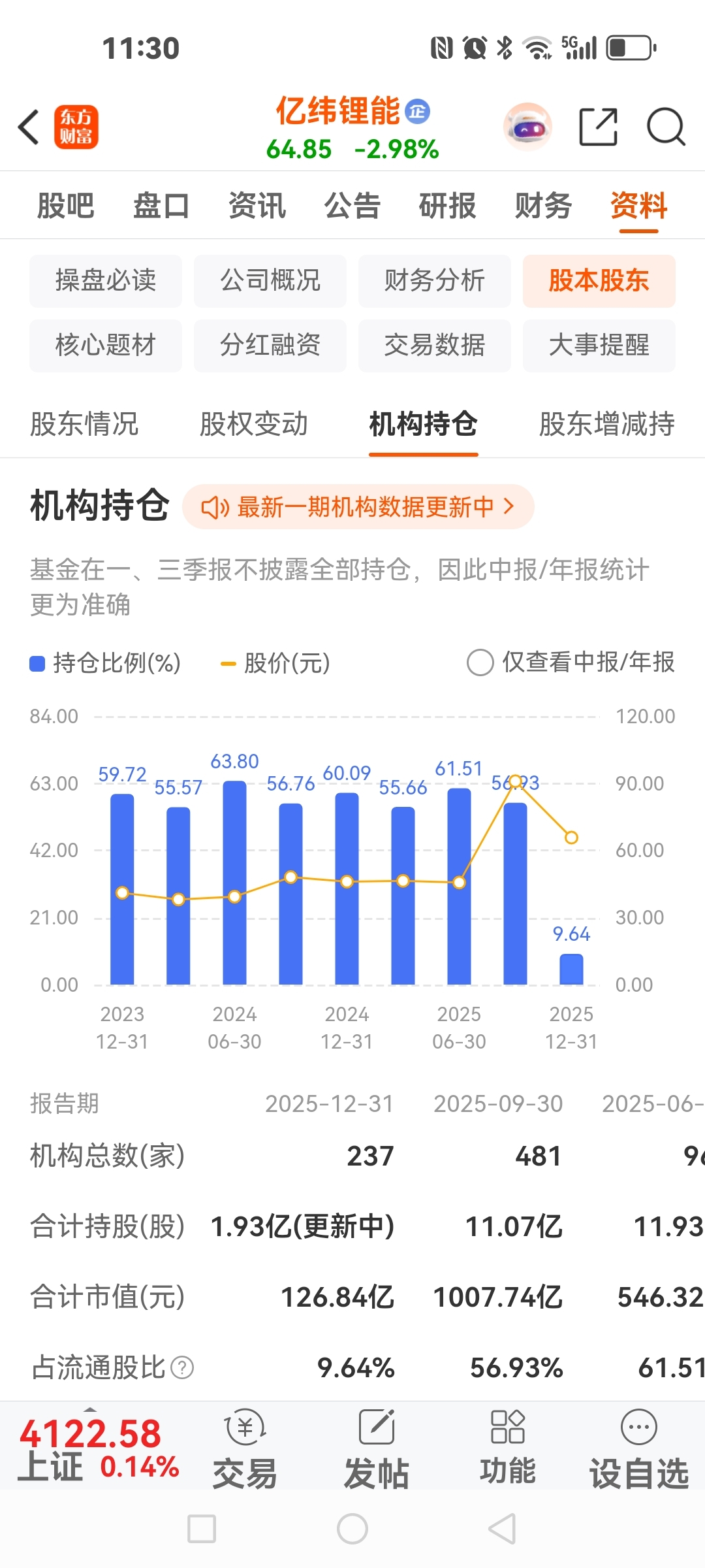 $亿纬锂能(SZ300014)$ 机构持续减仓,可能出问题了,去年第四季下降了百分之八十多,现在仅占百分之九点六