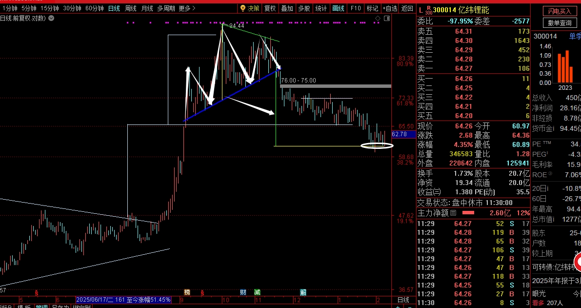 $亿纬锂能(SZ300014)$ 头肩底的等距跌幅满足,是不是刚刚好呢
