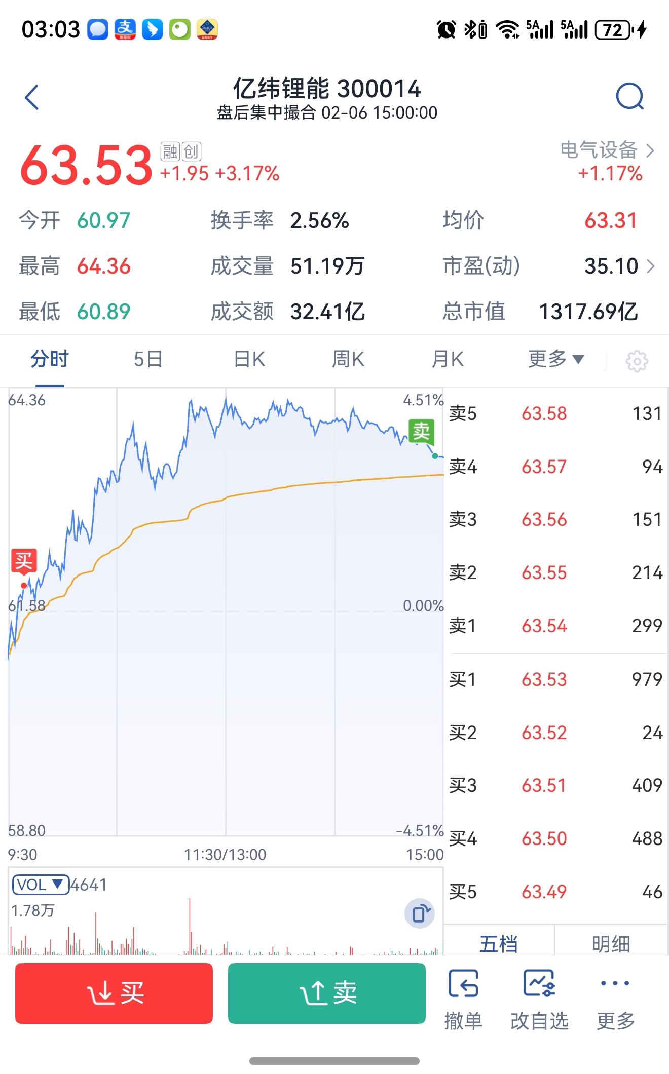 $亿纬锂能(SZ300014)$ 我以为会上65 ,哪知道你这么落鸡