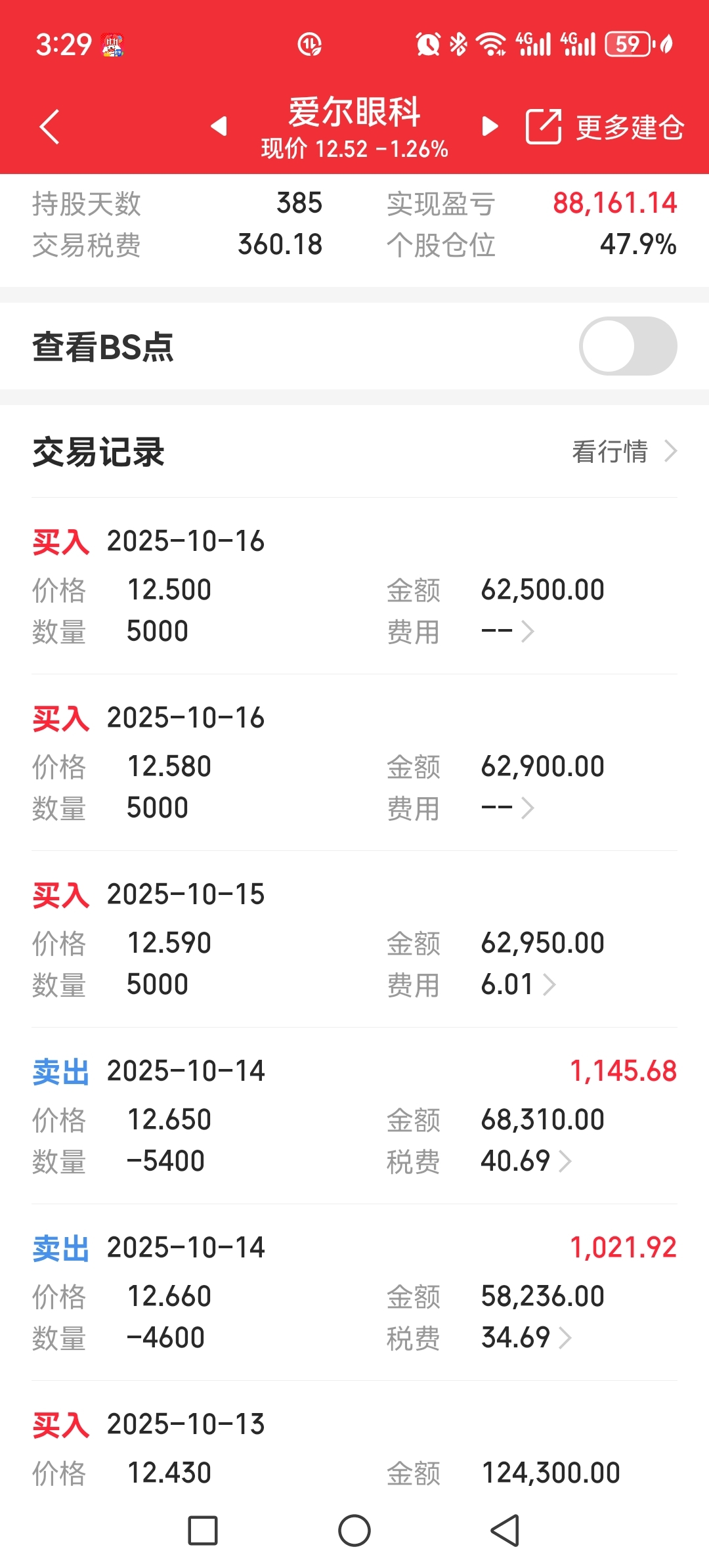$爱尔眼科(SZ300015)$ 去年10.8号出来的,刚好一年了,进来干活,年底之前拉到16我我就跑。主力加油。