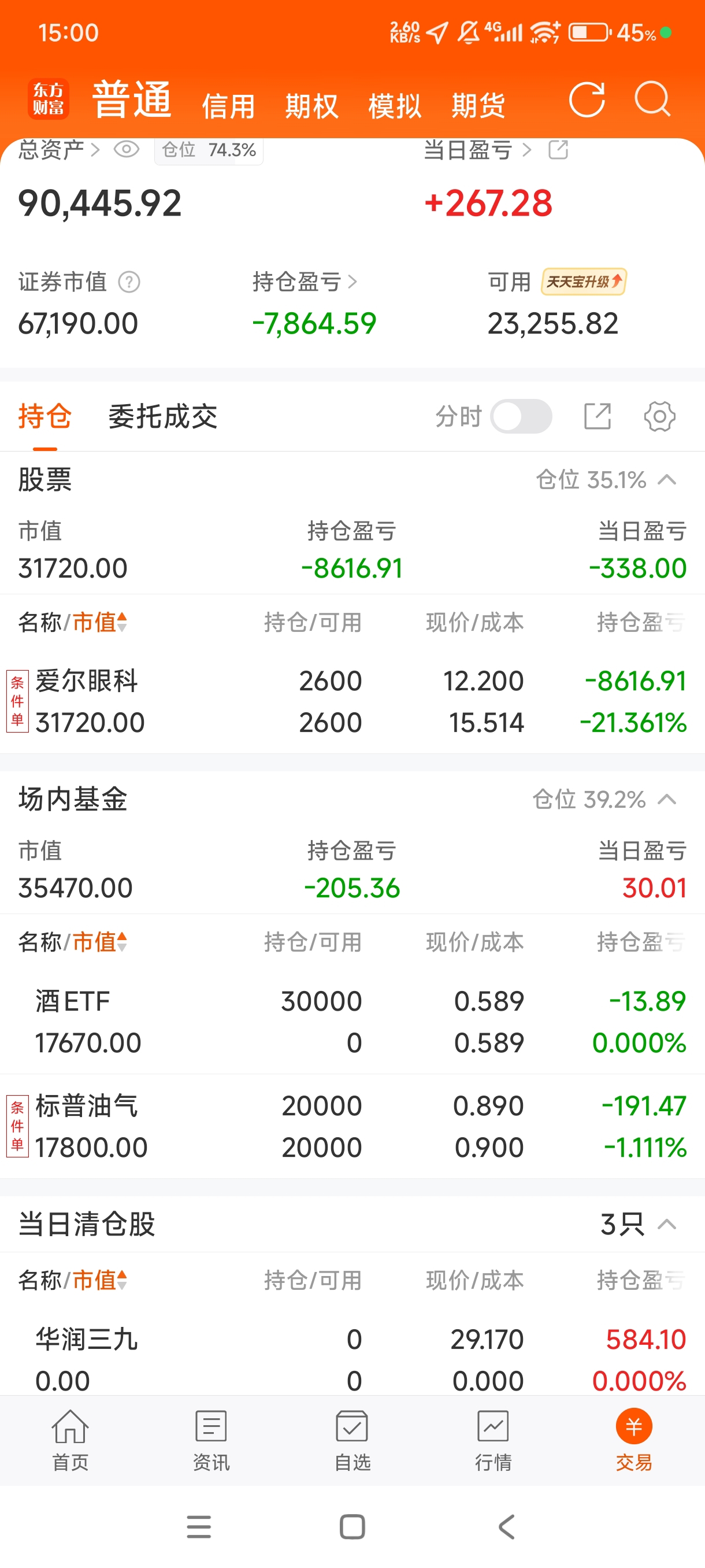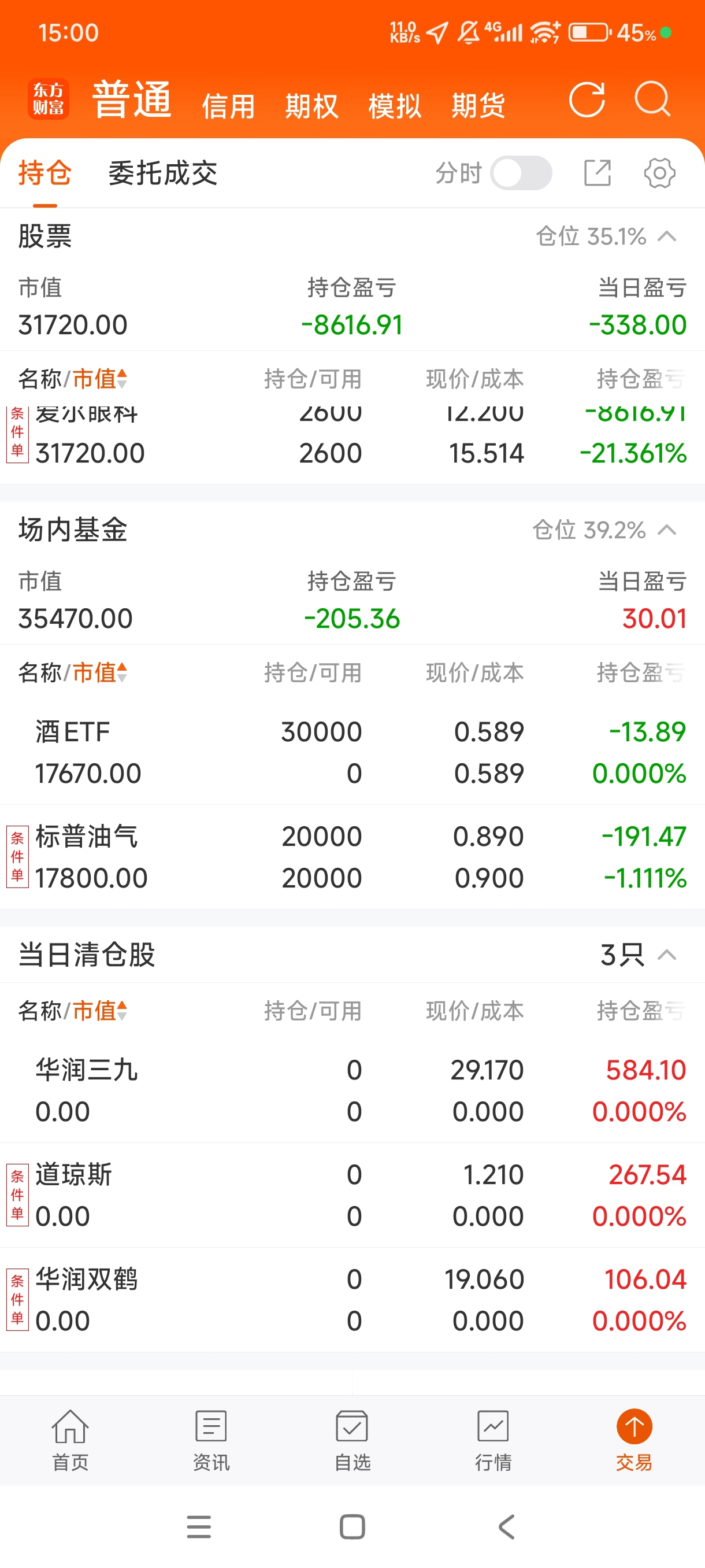 今年可以到10万吧,清仓三九,双鹤,道琼斯,建仓酒ETF。