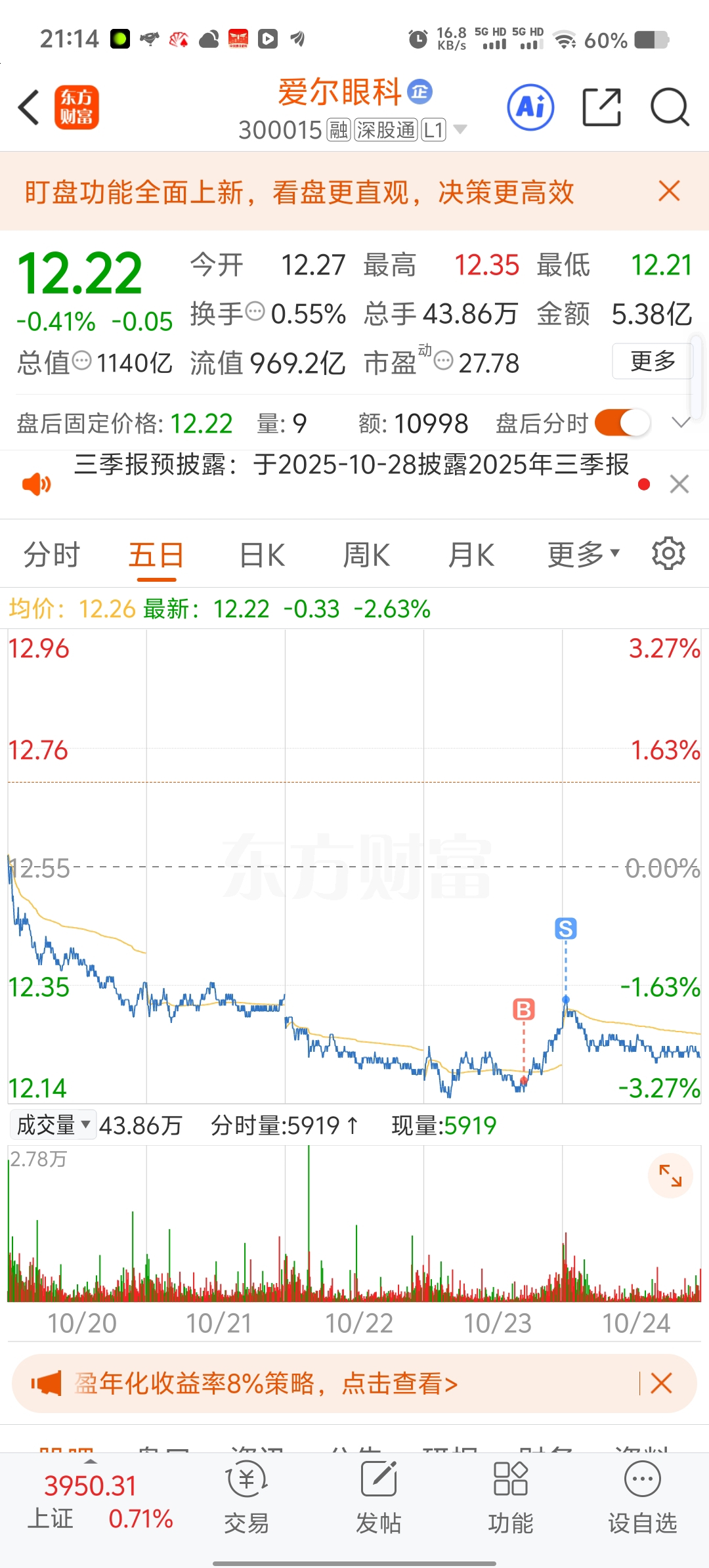 $爱尔眼科(SZ300015)$ 无语,就几手,把成本干到天上去。