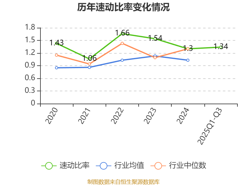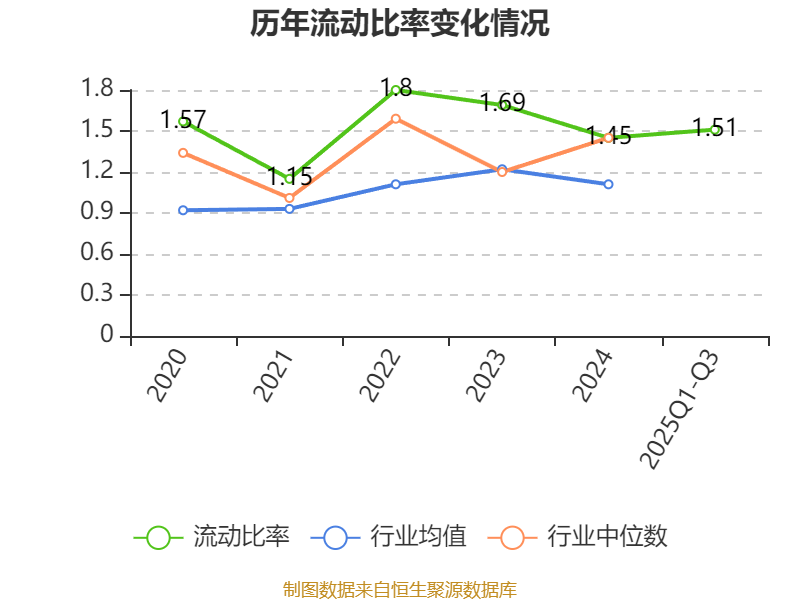 2025年前三季度,公司流动比率为1.51,速动比率为1.34。