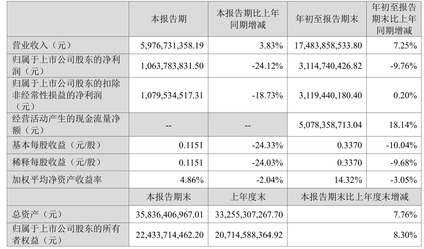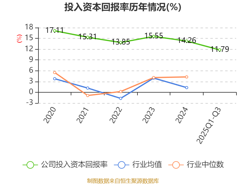 盈利能力方面, 2025年前三季度公司加权平均净资产收益率为14.32%,同比下降3.05个百分点。公司2025年前三季度投入资本回报率为11.79%,较上年同期下降2.3个百分点。