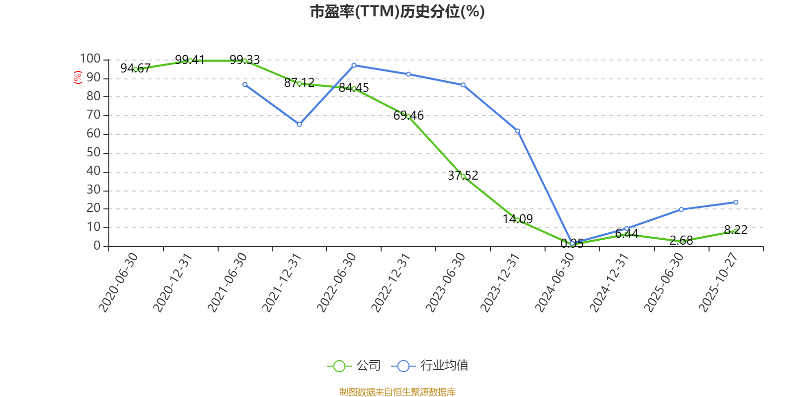 市盈率、市净率为负时,不显示当期分位数,会导致折线图中断。