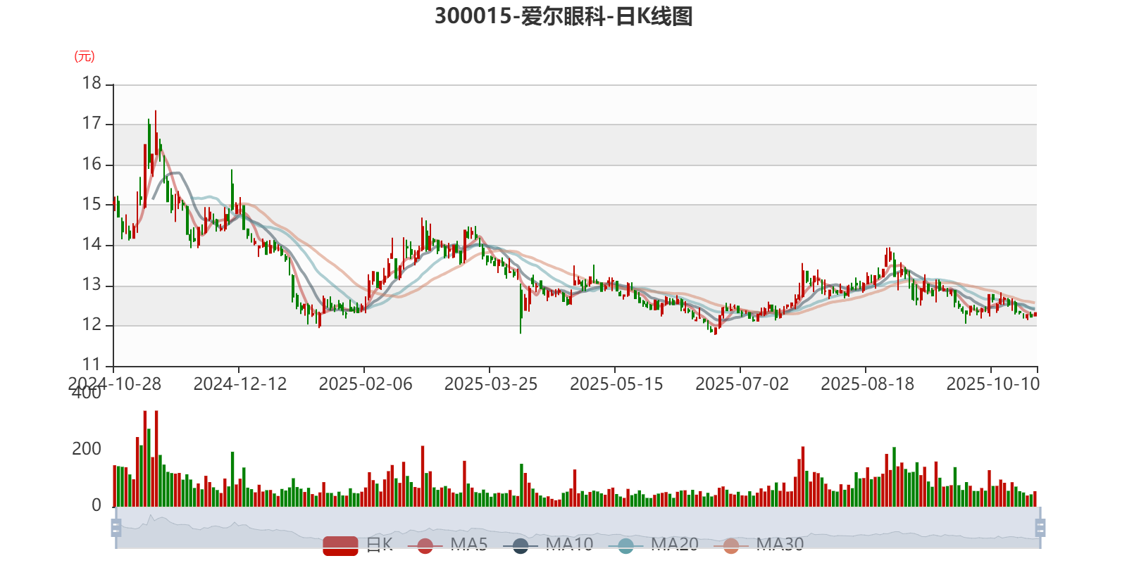三季报显示,2025年三季度末的公司十大流通股东中,持股最多的为爱尔医疗投资集团有限公司,占比34.34%。在具体持股比例上,香港中央结算有限公司、华宝中证医疗交易型开放式指数证券投资基金、易方达创业板交易型开放式指数证券投资基金、华泰柏瑞沪深300交易型开放式指数证券投资基金、易方达沪深300医药卫生交易型开放式指数证券投资基金、浙江飞科企业管理有限公司持股有所下降。