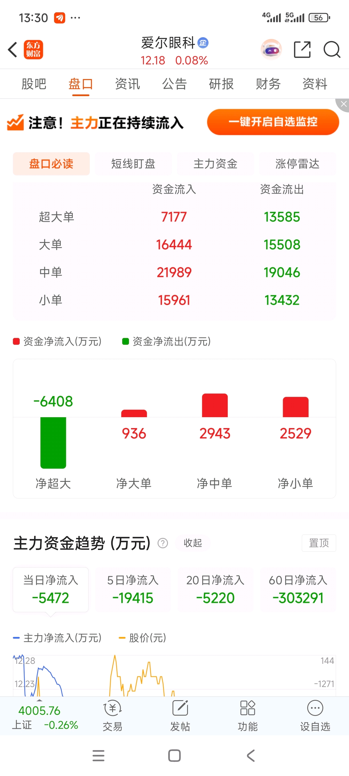 $爱尔眼科(SZ300015)$ 每天超大资金都在跑的
