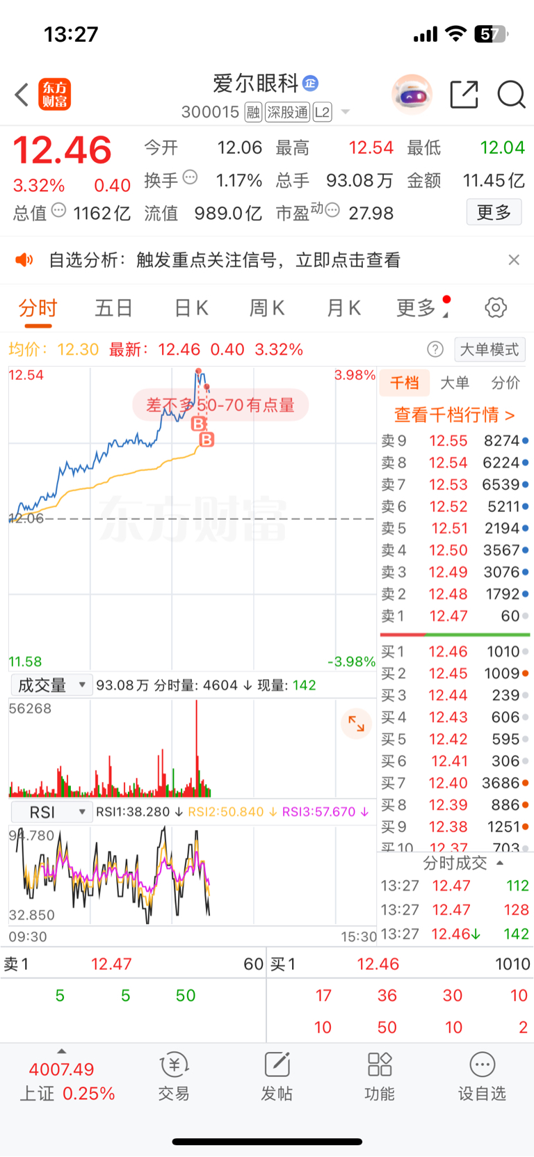 $爱尔眼科(SZ300015)$ 我吐了呀兄弟