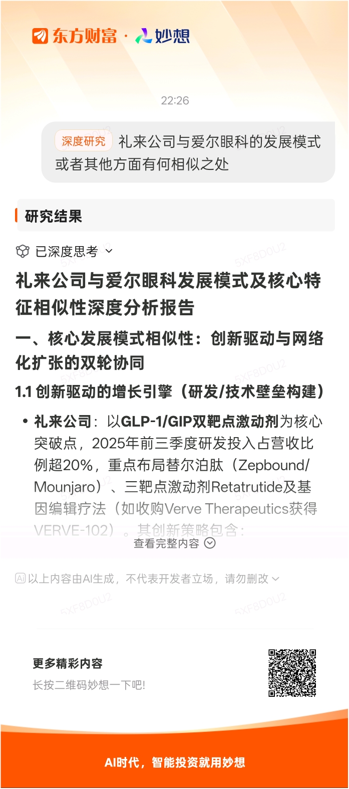 $爱尔眼科(SZ300015)$ 与1万亿美金市值的$礼来(NYSE|LLY)$ 发展相似之处,爱尔眼科距离礼来的市值差距只缺一个ar眼镜晶体植入,植入后眼睛自带ai功能,配合无线充电,可完美替代手机,成为最终智能ai端口解决方案。