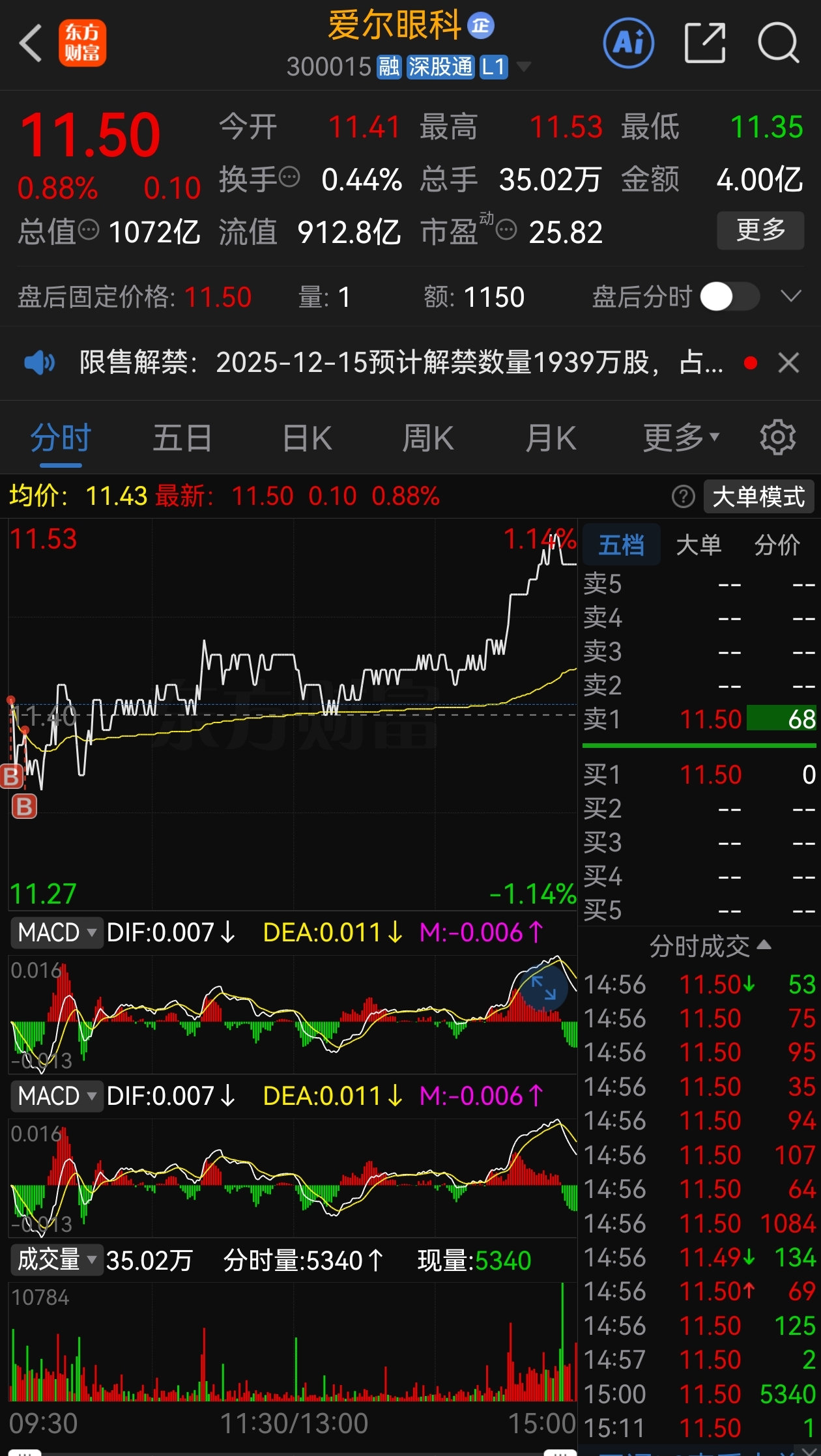 $爱尔眼科(SZ300015)$ 11.50—88 要我们一起发发