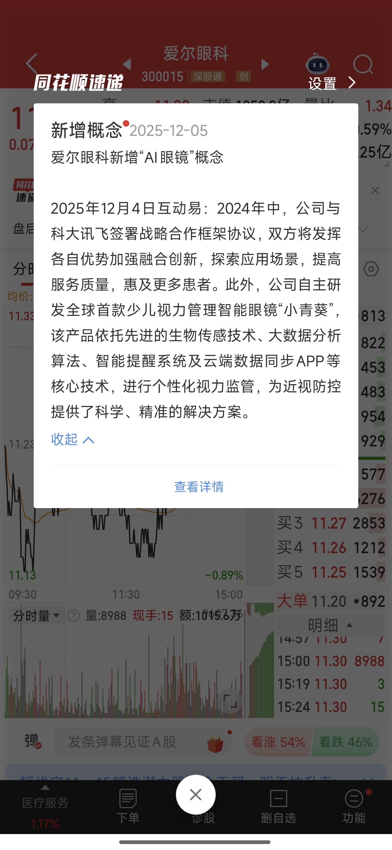 $爱尔眼科(SZ300015)$ 一个好消息一个坏消息,好消息爱尔新增ai眼镜概念,坏消息中信加了1700手多单,下周一大盘凉凉