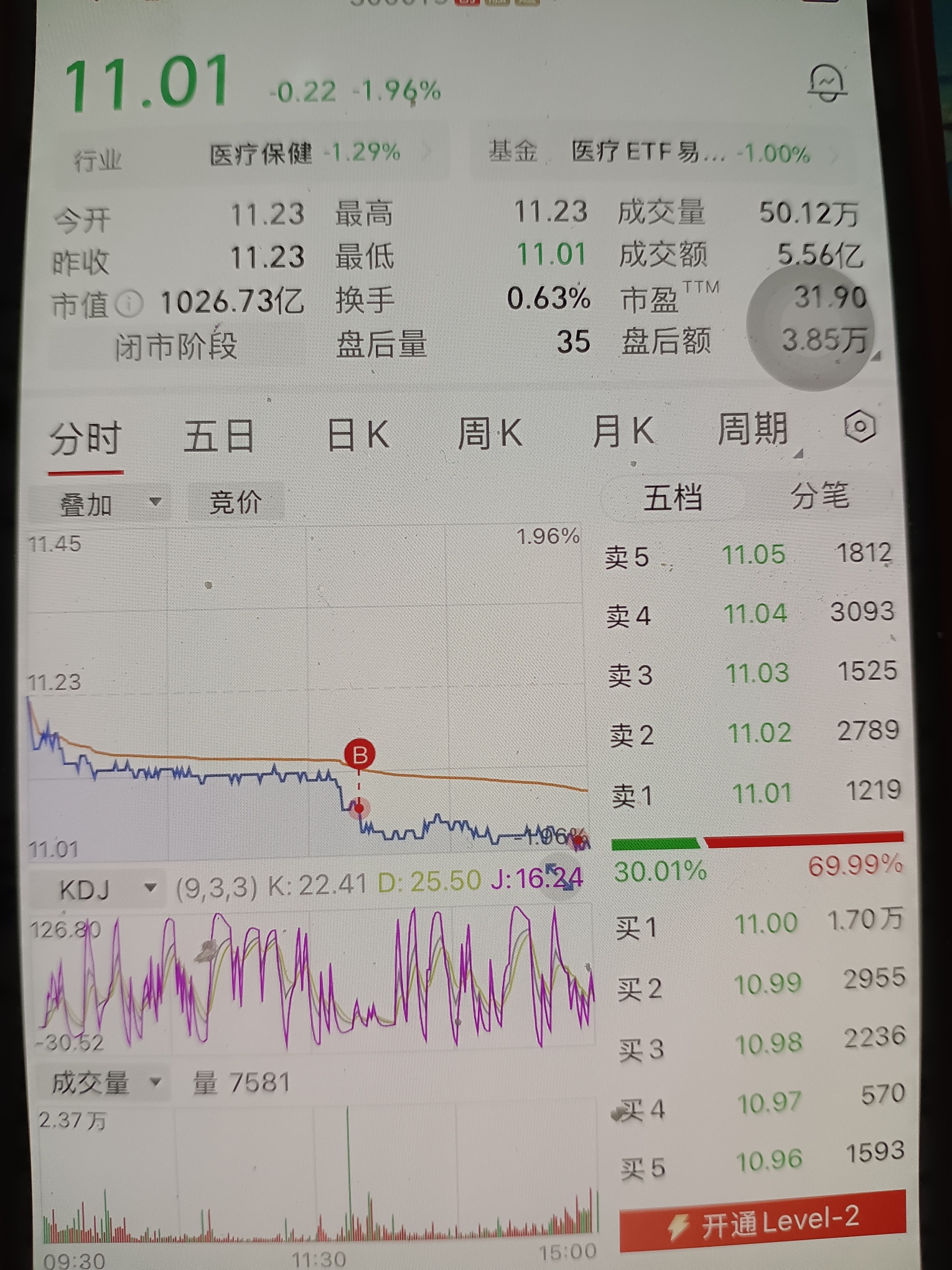 $爱尔眼科(SZ300015)$ 买一次套一次,尾盘11.01的单子都成交了。看来接下来不敢买了,不知道底在哪里。
