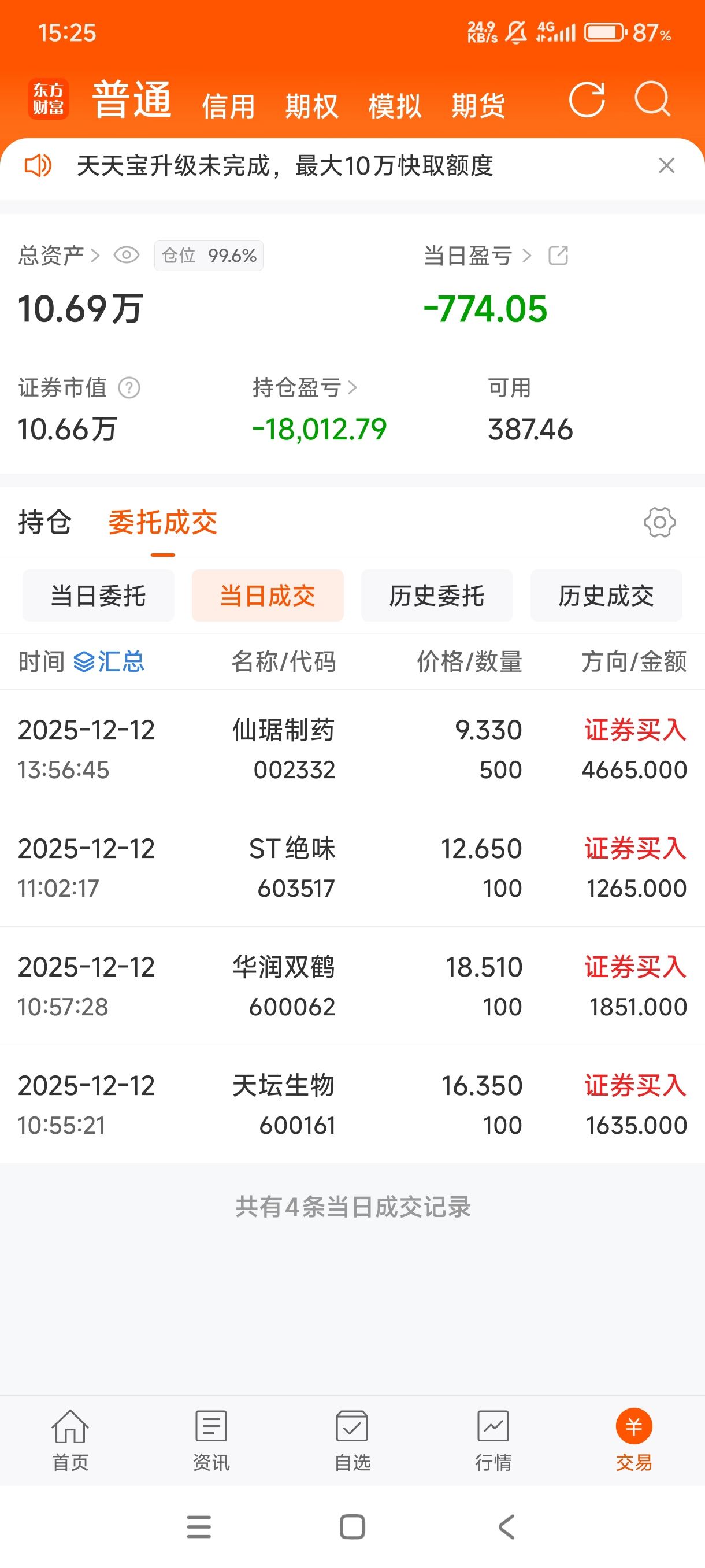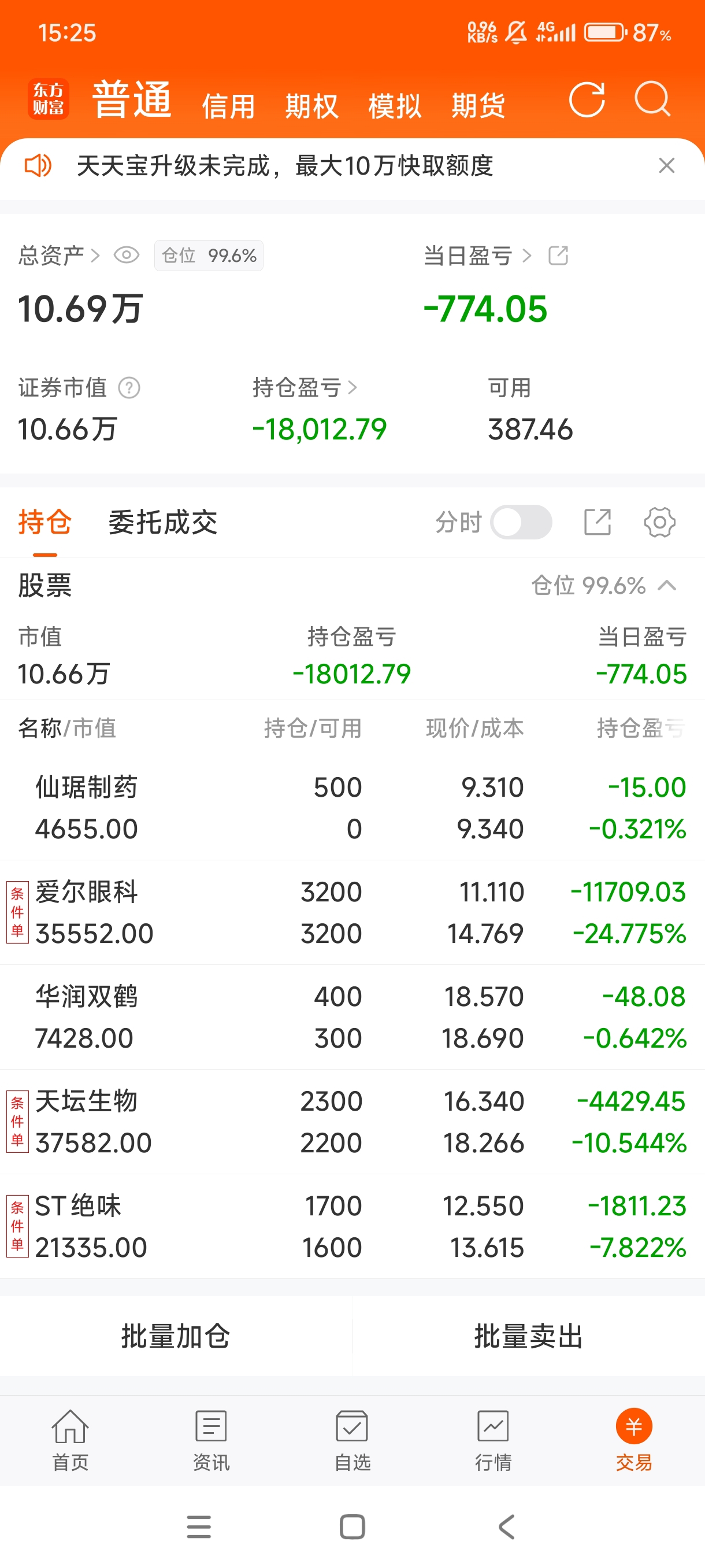 $爱尔眼科(SZ300015)$ $天坛生物(SH600161)$ $ST绝味(SH603517)$ 目标20万,今天打光子弹,不会再加仓了,毕竟要留够明年花的钱。以后要节衣缩食。除了吃饭喝水,能不花钱,尽量不花,账户到了20万买瓶53℃飞天茅台给我爸喝,