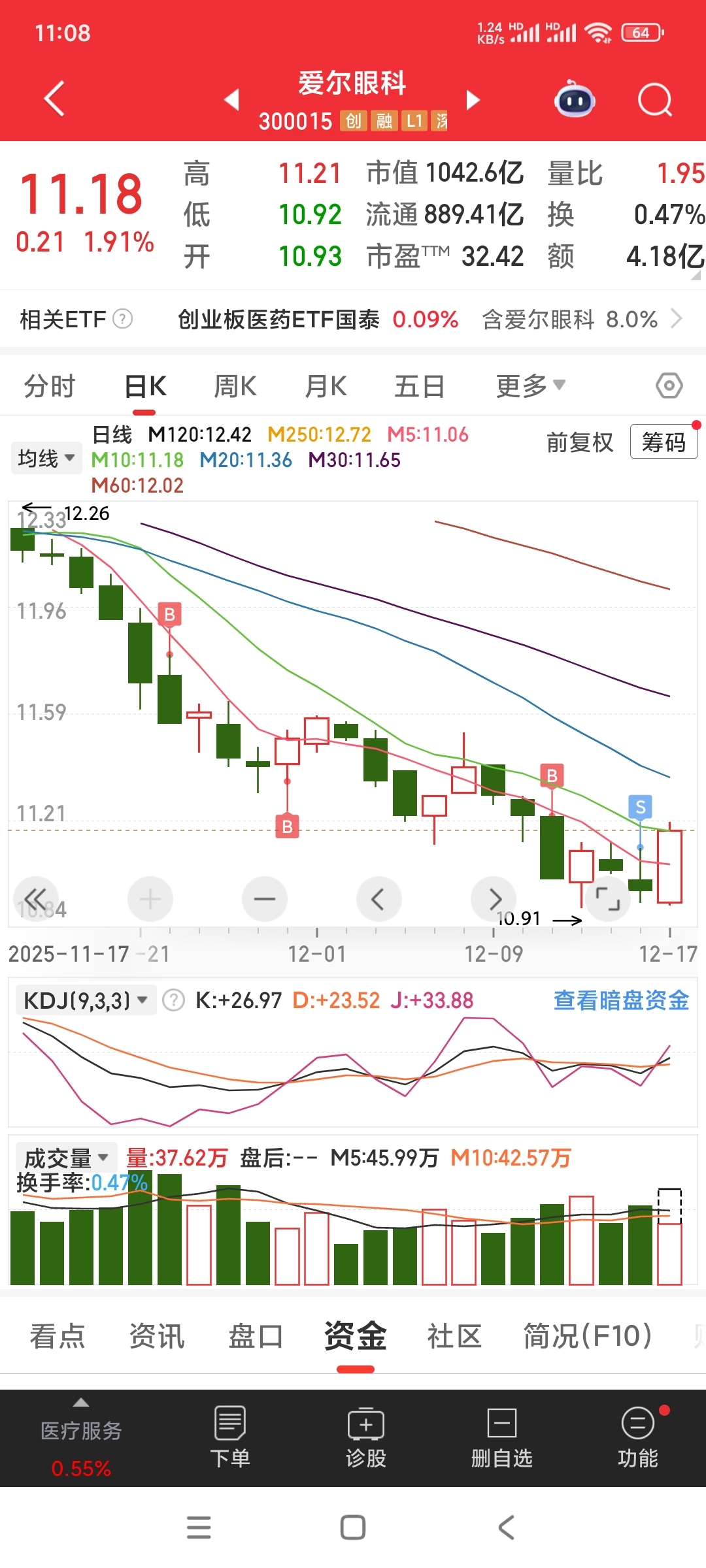 $爱尔眼科(SZ300015)$ 我难受啊