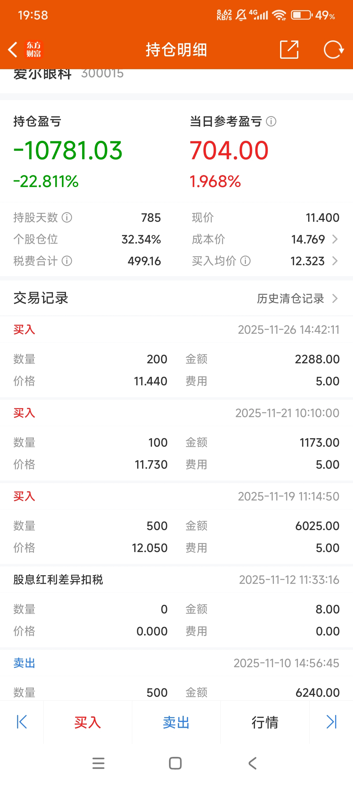 $爱尔眼科(SZ300015)$ 人生中套的最久的一只股票。785天了,我的选择,不盈利不平仓。