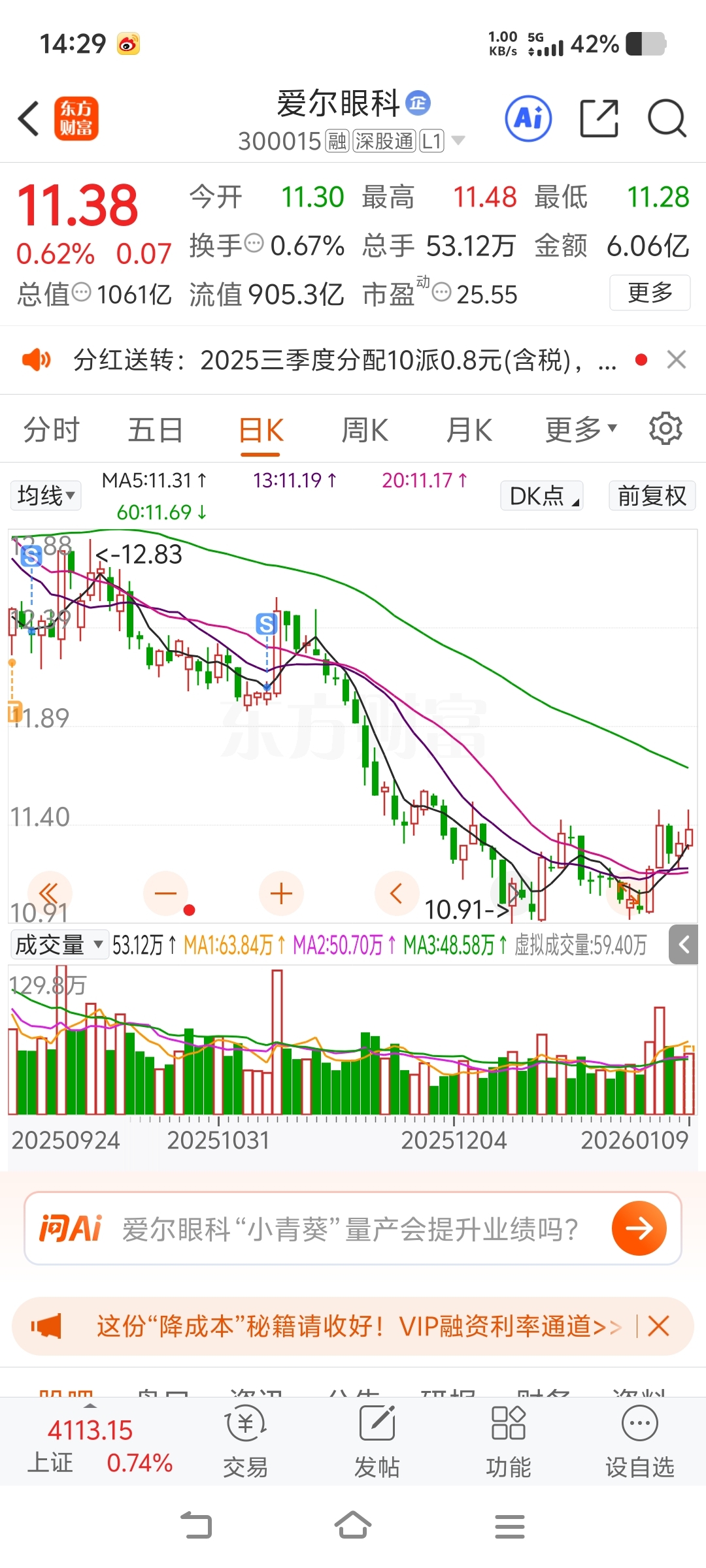 $爱尔眼科(SZ300015)$ 回家看看你们,拿了一年多的票亏了12个点卖后,买了科技回本还挣了不少,后排杂毛不能玩