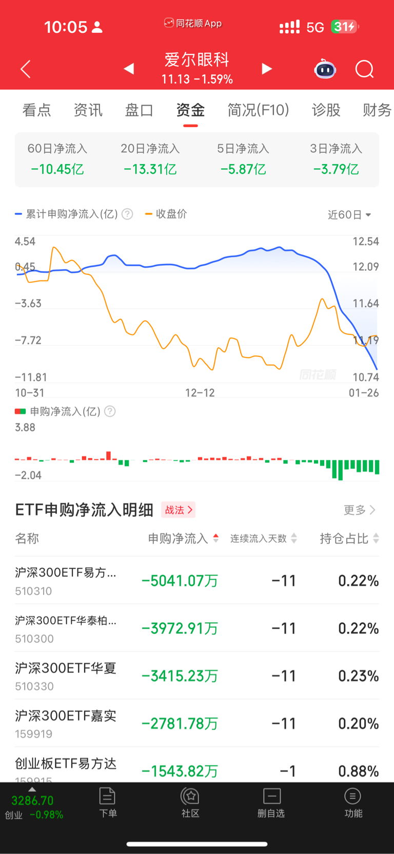 $爱尔眼科(SZ300015)$ 砸不动了吧?