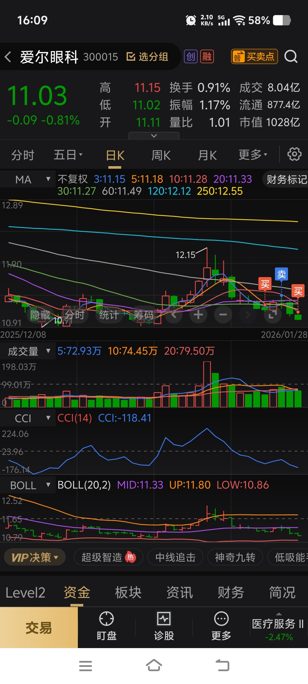 $爱尔眼科(SZ300015)$ 11.05又接回,与前天高抛又有3毛多差价。