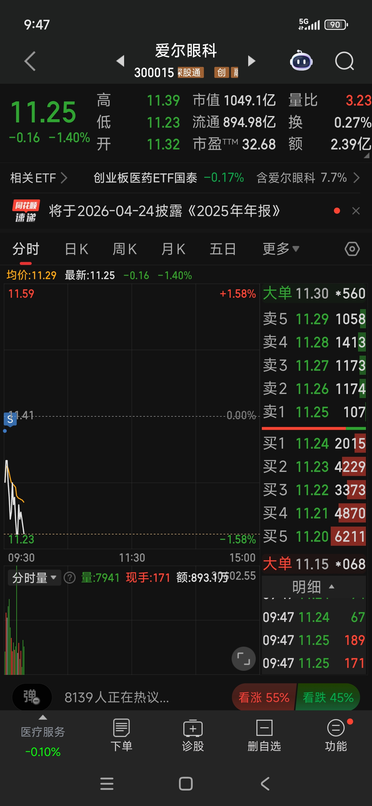 $爱尔眼科(SZ300015)$ 动作要快,姿势要帅,