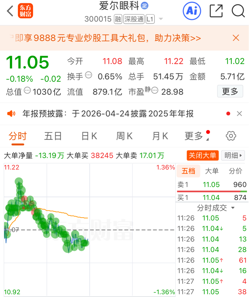 $爱尔眼科(SZ300015)$ 清仓大甩卖呀!