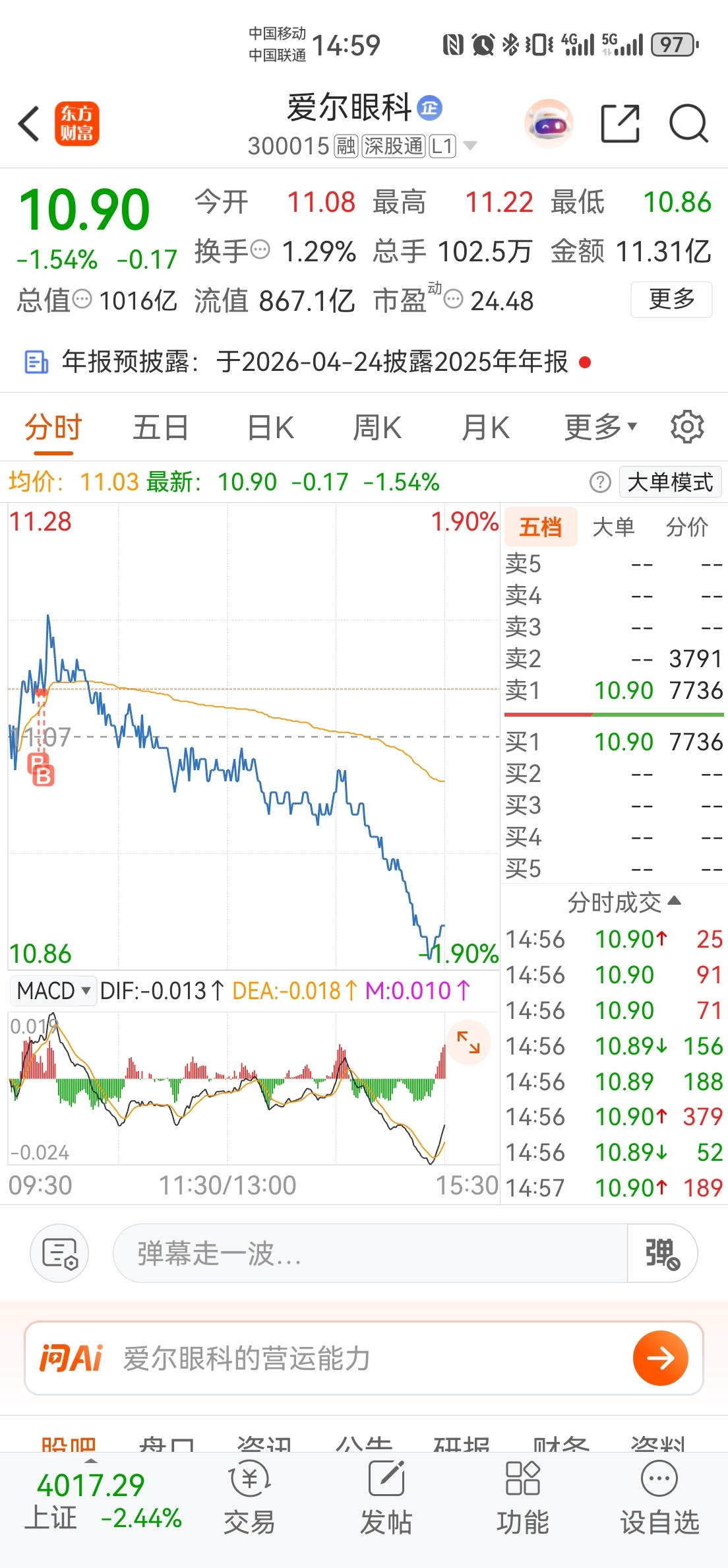 $爱尔眼科(SZ300015)$ 早上看起来没做错,结果大失所望!服了!