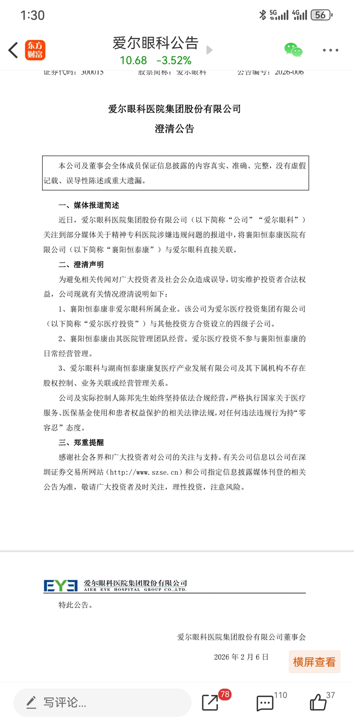 $爱尔眼科(SZ300015)$ 给位大神这个公告是不是官方公告